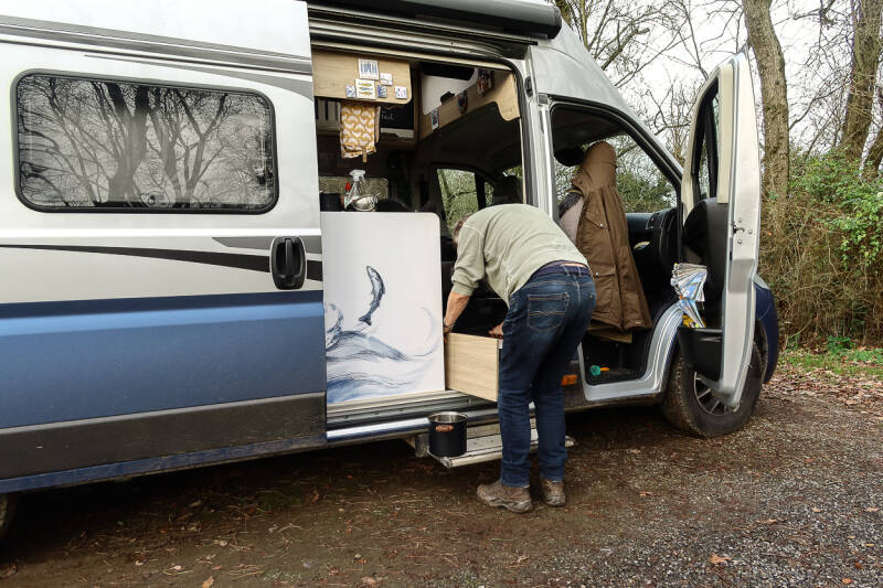 Soms is het niet leuk als je de enige techneut bent in de camper, zie hierboven. Alhoewel we ondertussen wel blij zijn met onze bus, is er toch genoeg om op te schelden. Lades die er constant uit vliegen, schroefjes die overal loslaten, putje in de badkamer dat vaak verstopt zit, maar waar met geen mogelijkheid bij te komen is zonder dat je eerst de halve bus verbouwd. Nee Knaus is niet zo’n degelijk Duits merk als we dachten...