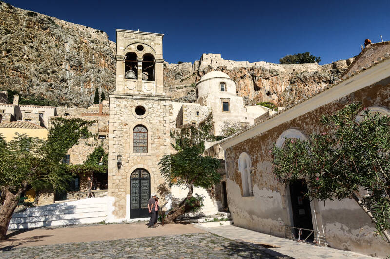 En dan eindelijk de plek voor vandaag die onze goedkeuring wel kreeg, met zicht op de rots voor het stadje Monemvasia.