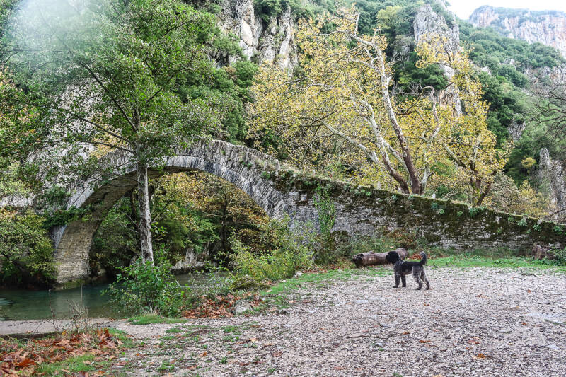 De mooie oude brug. Morgen gaan we een stuk de Vikoskloof in wandelen....even aankijken of het niet te eng is met Wally. De Vikoskloof is volgens het "world book of records",de diepste kloof van de wereld.