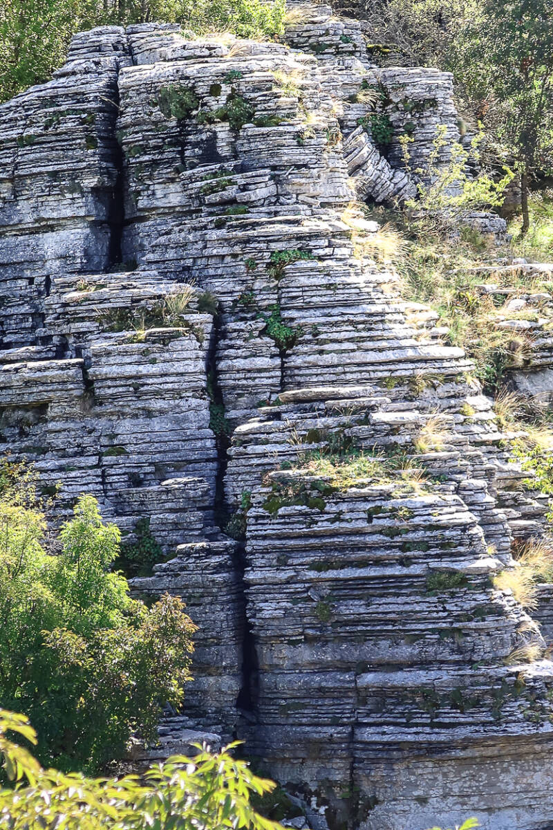 De rotspartijen hier bestaan uit allemaal leisteenlaagjes. Wat kan de natuur dat toch keurig netjes regelen.