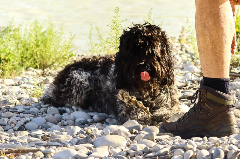 Het schooiertje kan hier lekker los rondscharrelen en die komt gelijk met een half geraamte van een schaap aanzetten.