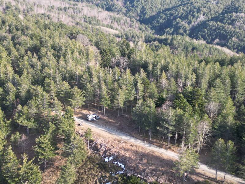 Om een beetje te kunnen zien waar we nou precies gaan overnachten heeft Ron zijn drone laten vliegen. Geen mens, huis of leven te bekennen in de buurt.