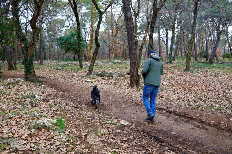 Vanochtend vroeg hoorden we al diverse mensen langs lopen met hun hond. Het bos waar we staan is een populair hondenuitlaatgebied. Allemaal leuke honden en vriendelijke wandelaars. We maken zelf ook even een rondje door het bos.