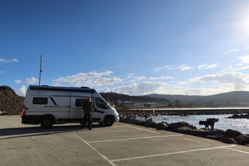 Gelukkig heeft Ron met zijn nieuwe speeltje nog een filmpje gemaak. Ik denk dat het hier in de zomer met andere getijden, prachtig moet zijn. Nu ook hoor, maar de twee eb-tijden overdag zijn om 6 uur in de ochtend of om 20 uur in de avond en beide tijden is het nog donker. Al om al een heerlijke dag vandaag. Zo nu even een potje koken in de bus. We staan op een camperplaats bij het stadje San Cibrao. Best leuk, maar we kregen net een betere tip van Paul en Astrid, twee verwoede Noord Spanjegangers, dus morgenochtend verplaatsen we wat kilometers.