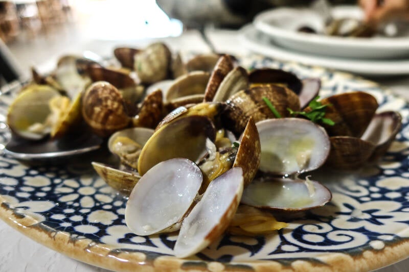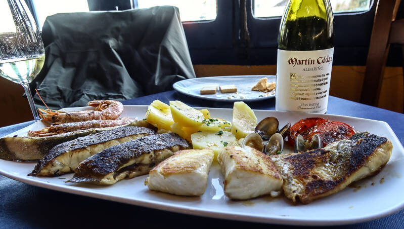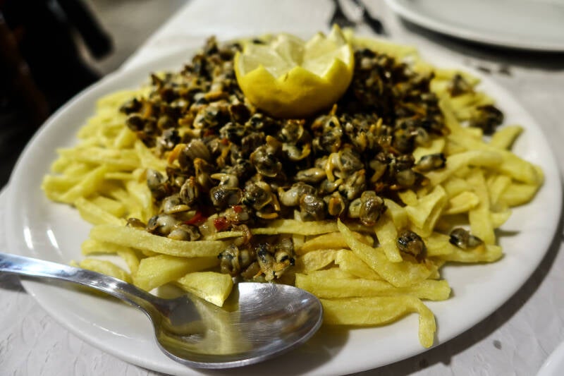 Lunch vanmiddag hier in het dorp bij Os Velos. Een eenvoudiger zaakje kan je niet treffen, zelfs de Nederlandse voetbalkantines zijn gezelliger, maar wat een heerlijk eten. Bord één, Almejas a la Marina, verrukkelijk...bord 2 Berberechos con Fritas, ook verrukkelijk. Als ik die 2 gerechten ga vertalen komt er bij beiden "kokkels " uit.