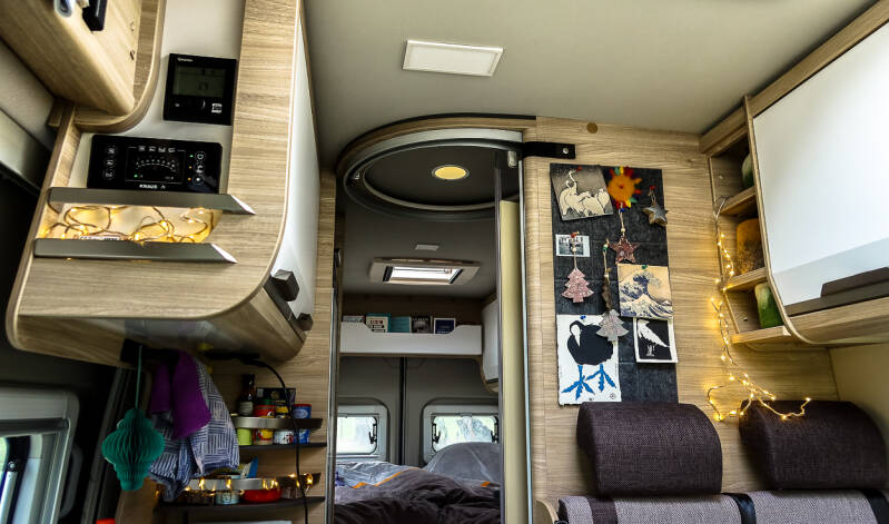 Het koelt hier snel af als de zon achter de bergen verdwenen is, dus nu zitten we in de camper en krijg ik het ineens in mijn bol; "er moet Kerstversiering komen binnen, en wel nu!".
