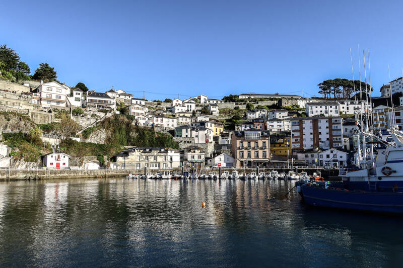 Koud vannacht en dat mede door onze Wallemans die weer al het dek van me af trok. Tja, mijn eigen schuld, dus ik klaag niet. Vanochtend bleek het ook flink gevroren te hebben vannacht. Ik ben al lang blij dat het niet sneeuwt, het was nogal een pittige tocht om hier te komen en met sneeuw terug lijkt me niet leuk. We zijn dus weer terug naar de kust van Asturia gereden. Onderweg even gestopt in het plaatsje Luarca den wat rondgewandeld. Leuke plaats, levendige vissershaven, beetje ongepolijst en de zon schijnt heerlijk.