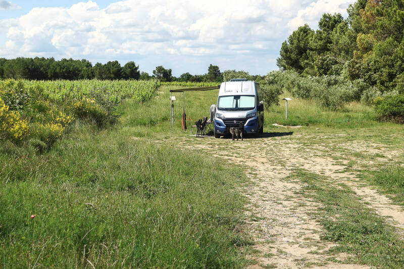 Prachtig mooie plek gevonden aan de rand van de Alpilles, dat is een kleine maar hele mooie bergketen in de Provence. Stonden we eerst nog alleen, maar dat duurde niet lang. Geeft niks ruimte zat hier.