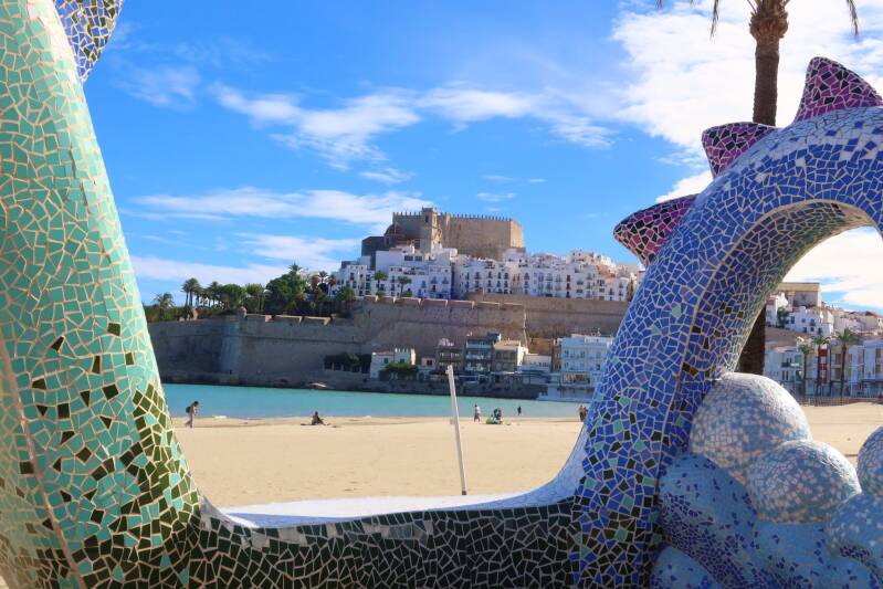 Strand Peniscola, met zicht op het oude ommuurde gedeelte.