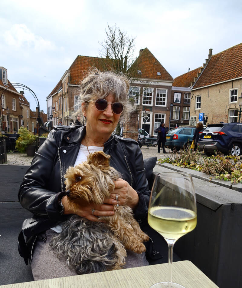 Hondje van de eigenaar van het restaurant sprong zo op schoot. Ooit, als ik heel oud mag worden, wil ik ook zo’n klein mormetje voor op schoot.